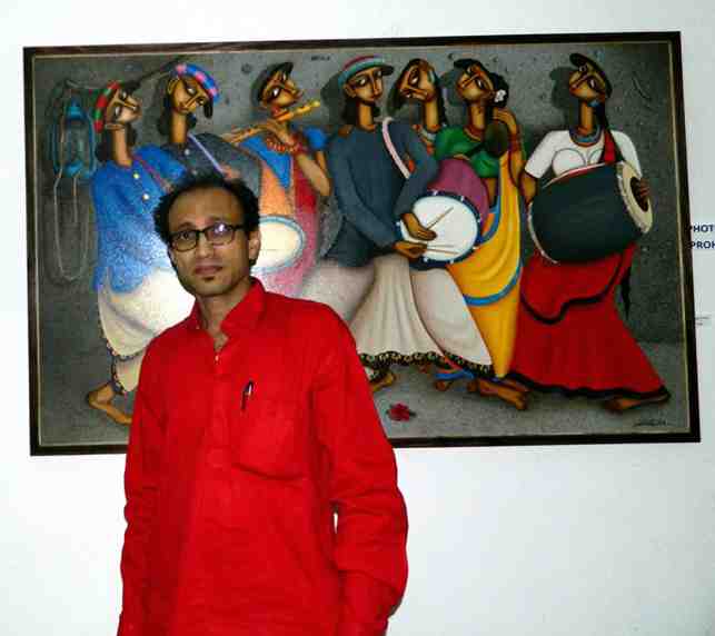 Born In 1969, Pintu Paul is a self-made artist without any institutional training. He has achieved his skill and sensitivity in art from his family heritage.His father Phani Bhushan Paul was an ornament designer. His grandfather was a creative potter, used to sculpt images of gods and goddesses. Out of this heritage Pintu achieved an in born insight into intrinsic rhythm of aesthetic creativity. After proceeding to a considerable extent he went to the renowned artist of neo-Indian style, Samar N Bhowmik who guided him and encouraged his passion for creativity. Paul made his first solo exhibition in 2003 and since then he had not to look back. With a creative zeal he has proceeded forward to reach the present state of his skilful and meditative creations. In his present forms Pintu Paul amalgamates various nuances of lyrical linearity of indigenous folk tradition, the meditative inwardness of Indian classical sensibility, the fantasy-oriented technique of transformation of human figures from naturalism towards an expressionist sobriety based on Western modernistic formal orientation.